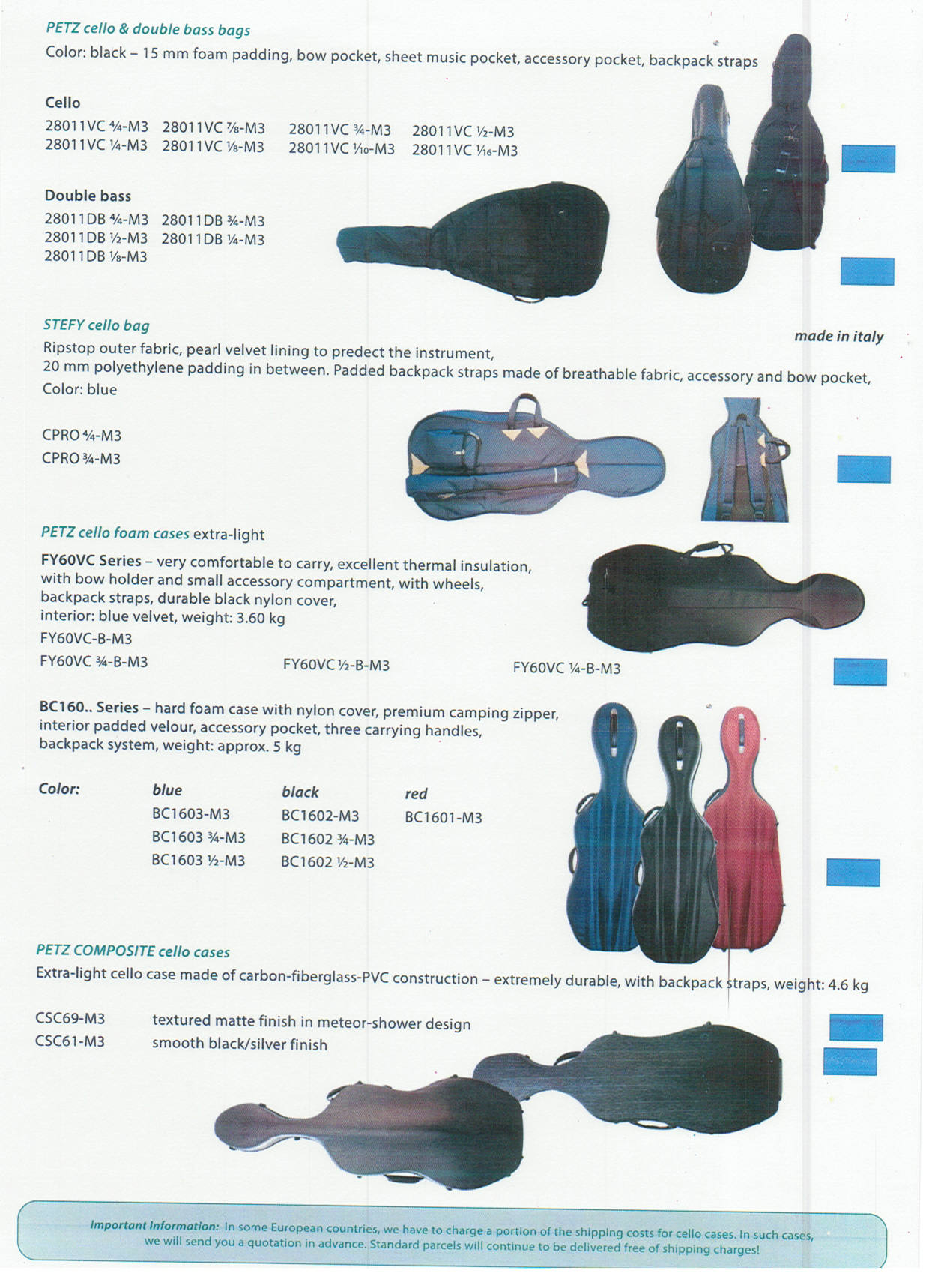 First two pages show some great deals on replacement instrument cases.GDfV&A also has it's own Arcofacile brand of cello soft bags, four different models on special offer too for this Back to School period please go to our e.shop for images and prices. In our downloads section is a Full Children's Pricelist covering everything that they will need to make a flying start this year!