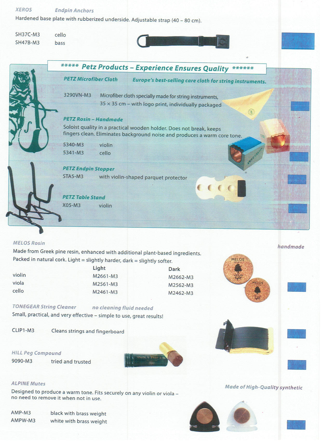 In this download is the complete selection of SonoroSempre instruments in fractional sizes together with Arcofacile Bows, the quality everyday Arcofacile Accessories needed and a careful selection of favourite branded accessories for your instrument and aids for better playing, bowing, instrument care, and so on...