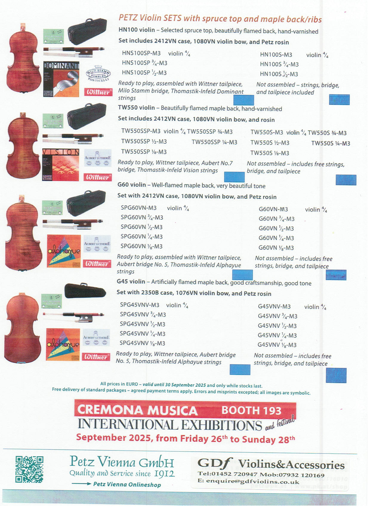Additional catalogues for Orchestral stringed instruments available from GDfViolins&Accessories to order broken down into a pdf section for each instrument so you can focus on your instrument only.